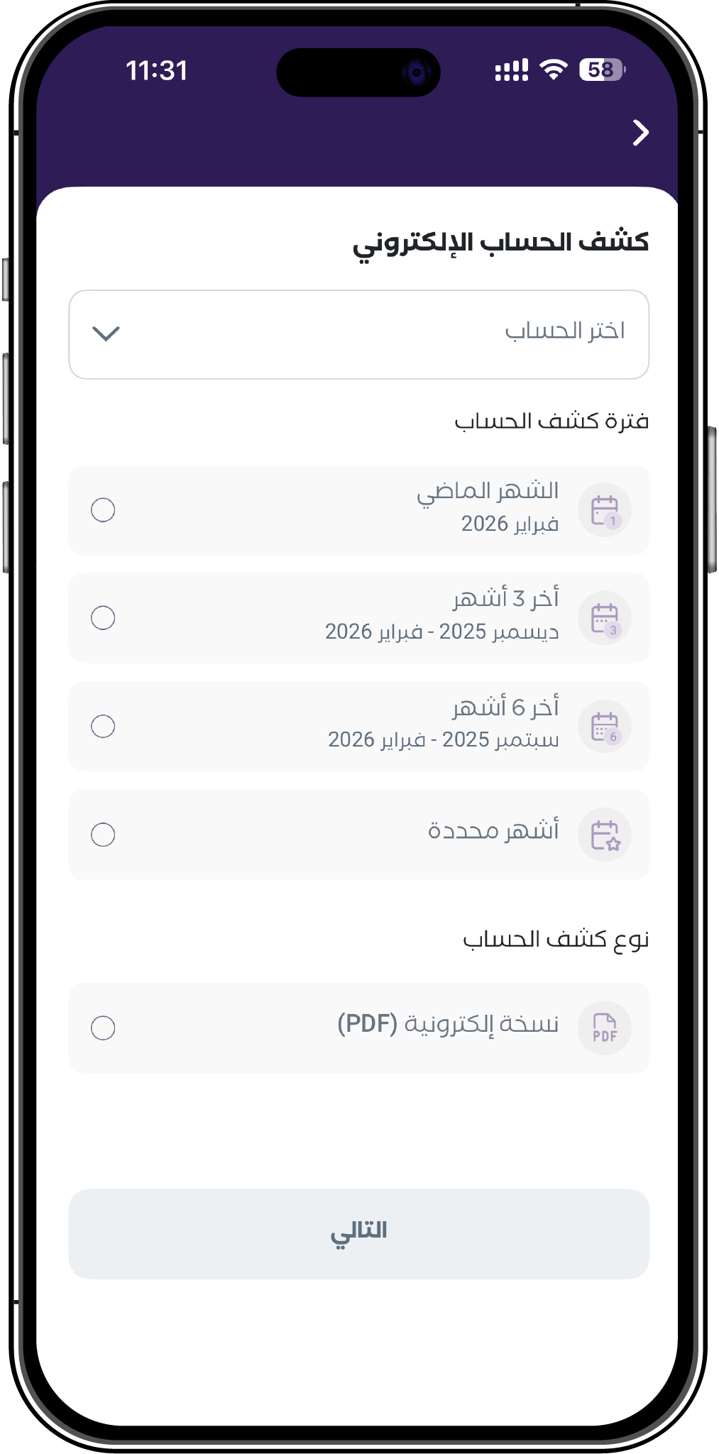- اذا تم اختيار أكثر من شهر سيتم إرسال كشف الحساب عبر البريد الإلكتروني الخاص بك.