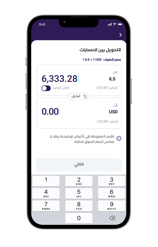 - تحويل العملات بين حساباتك بأسعار تفضيلية.