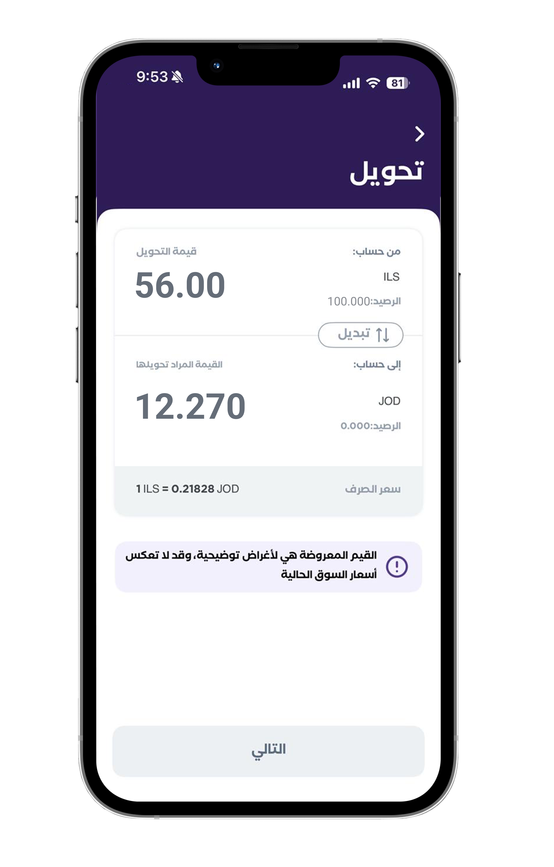 - العملات المتاحة: (الدولار الأمريكي، الدينار الاردني، الشيكل)